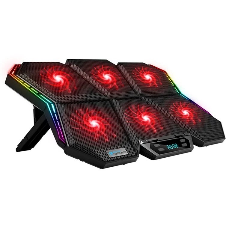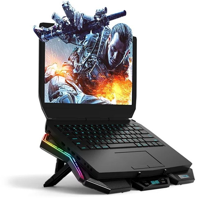 پایه خنک کننده لپ تاپ کول کلد مدل K40 ساخته شده از ABS با کیفیت و فلز میباشد. وظیفه تهویه در این کول پد را ۶ فن مجزا قدرتمند با ابعاد ۶۰x60x15 میلی متری به عهده دارند. همچنین این کول پد دارای نورپردازی RGB با ۱۲ حالت پیش فرض نورپردازی میباشد. بر روی این کول پد یک پنل کنترل دیجیتال که وظیفه کنترل تعداد فن روشن، سرعت فن و نورپردازی را به عهده دارد تعبیه شده است. سرعت چرخش فن این دستگاه ۲۹۰۰±۱۰%RPM(5V) می باشد در نتیجه عملکردی موثر در خنک کنندگی لپتاپ شما دارد. به لطف دمندگی بالای فن های قدرتمند، این کول پد گزینه مناسبی برای بازی های رایانه ای، کارهای گرافیکی و طراحی ها سنگین می باشد. این کول پد همچنین دارای پایه های تنظیم ضد لغزش با ۷ ارتفاع مختلف است تا در نتیجه از نظر ارگونومیک گردن و کمر شما را در برابر تاثیرات منفی کار طولانی مدت با رایانه محافظت کند. بر روی این کول پد دو عدد درگاه USB 2.0 تعبیه شده است و در کنار تامین انرژی مورد نیاز برای کارکرد دستگاه، شارژ سایر دستگاه های دیجیتالی از طریق درگاه دوم ممکن است. این پایه خنک کننده مناسب برای لپ تاپ های با ابعاد تا ۱۷ اینچ است